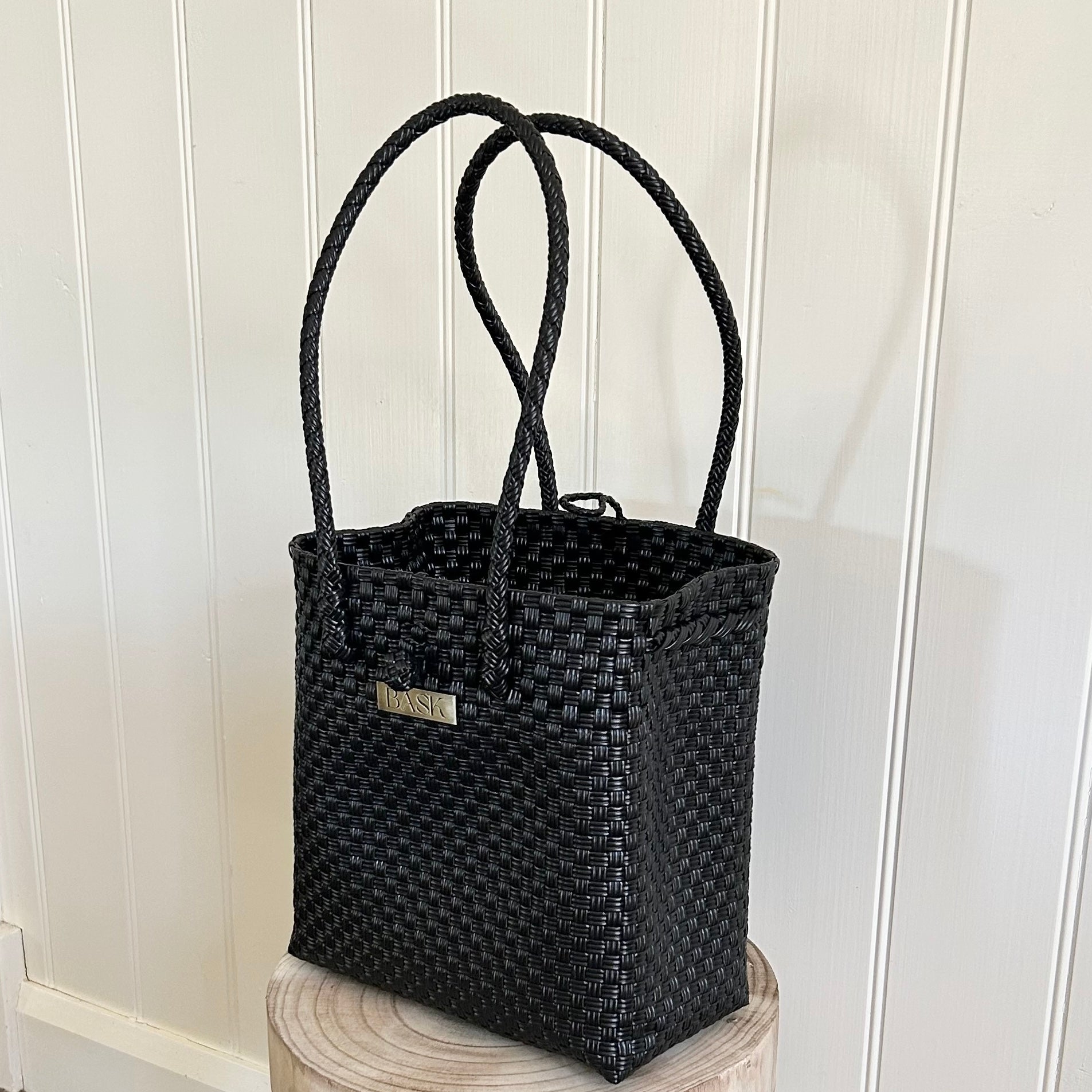 *please note sizes may vary due to the handmade nature of our bags* handle length and badge placement will vary on the weave of each bag - please use photos to reference
