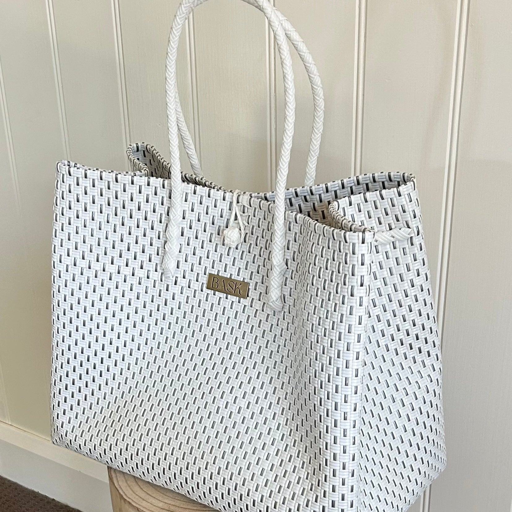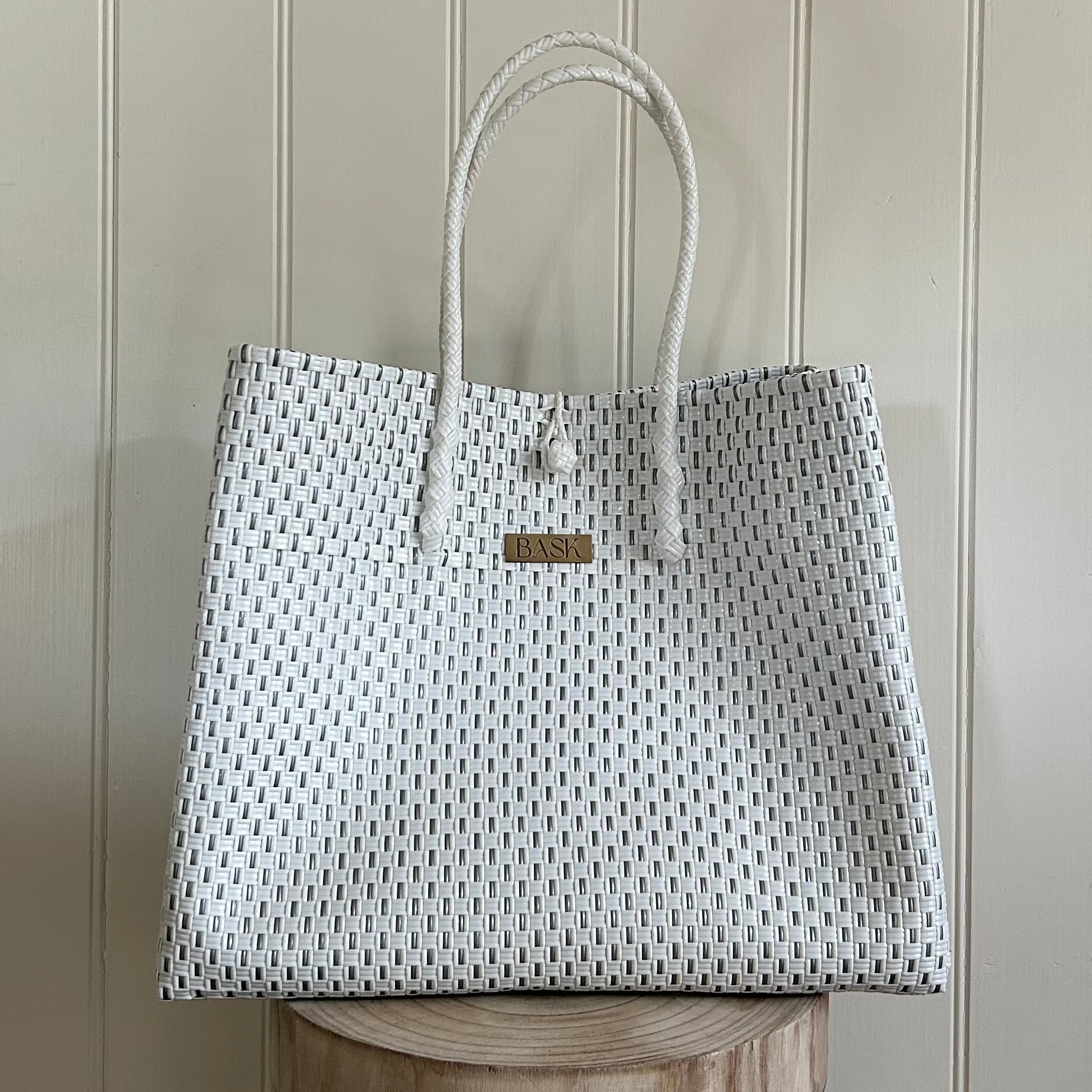 *please note sizes may vary due to the handmade nature of our bags* handle length and badge placement will vary on the weave of each bag - please use photos to reference