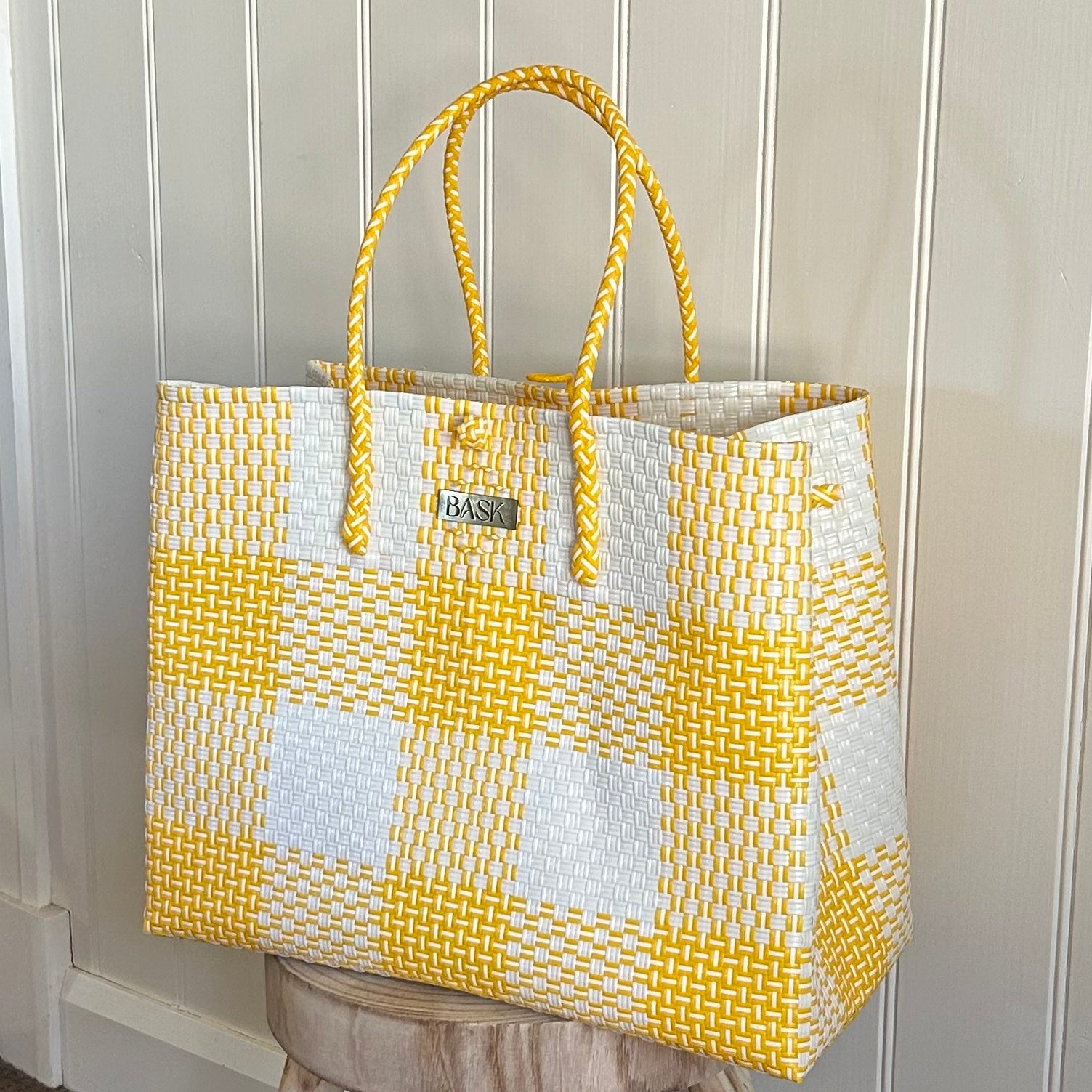 *please note sizes may vary due to the handmade nature of our bags* handle length and badge placement will vary on the weave of each bag - please use photos to reference